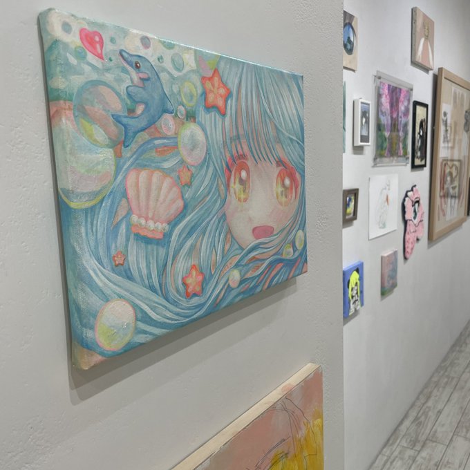 本日12時よりオープンします! 宜しくお願いします〜 (手前の水色の作品はSHIORICHANのです🐬) #ドローイング展ゆうだち 新宿眼科画廊 スペースM 6月3日〜6月15日 12:00〜20:00(水曜のみ〜17:00) 木曜休廊