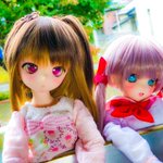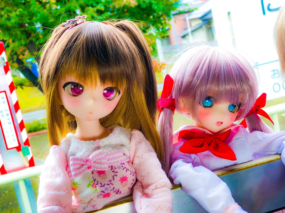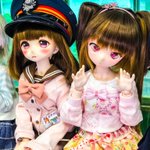 のあ「昔の女学生にしか見えない」 あい「レトロです」 のあ「朝から元気だね」 あい「元気100倍あいちゃんマン」 #ドールオーナーさんと繋がりたい #ドール #うちのこかわいい #MDDはいいぞ #ドーラーズトレイン