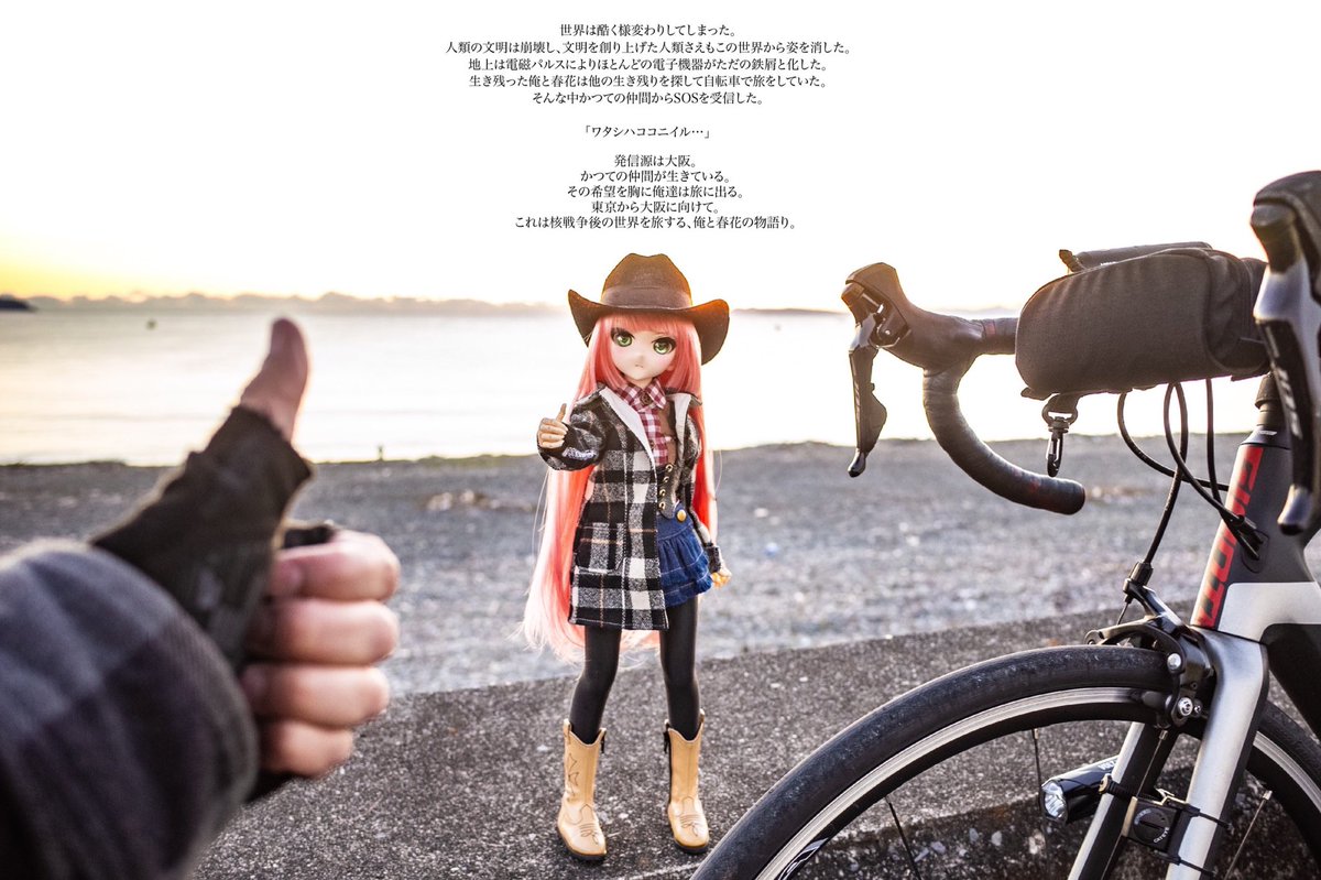 【新刊案内】 「R」 ¥1000 A4 32P 舞台は核戦争後の世界。 生存者を探して東京から大阪を自転車でドールと旅をする写真集です。 #C99 #コミケ99 #ドールとオーナー #ドールとポートレート #ドールとセルフポートレート