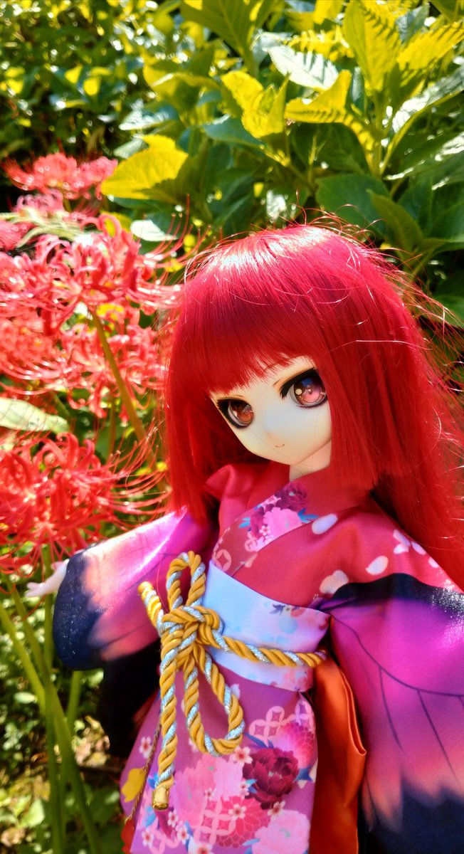 #杜野凛世「縛りんぜ…でございます」 #ドールと彼岸花 #ノードール・ノーライフ #今夜のドール撮影120分一本勝負 #うちのこに癒され24時間 #深夜のドール撮影素敵文1440分1本勝負 #シャニマスドール部 真上から撮ると彼岸花に見えない #ドール撮影の理想と現実 寝そべり専用スタンド 正式名:譜面台