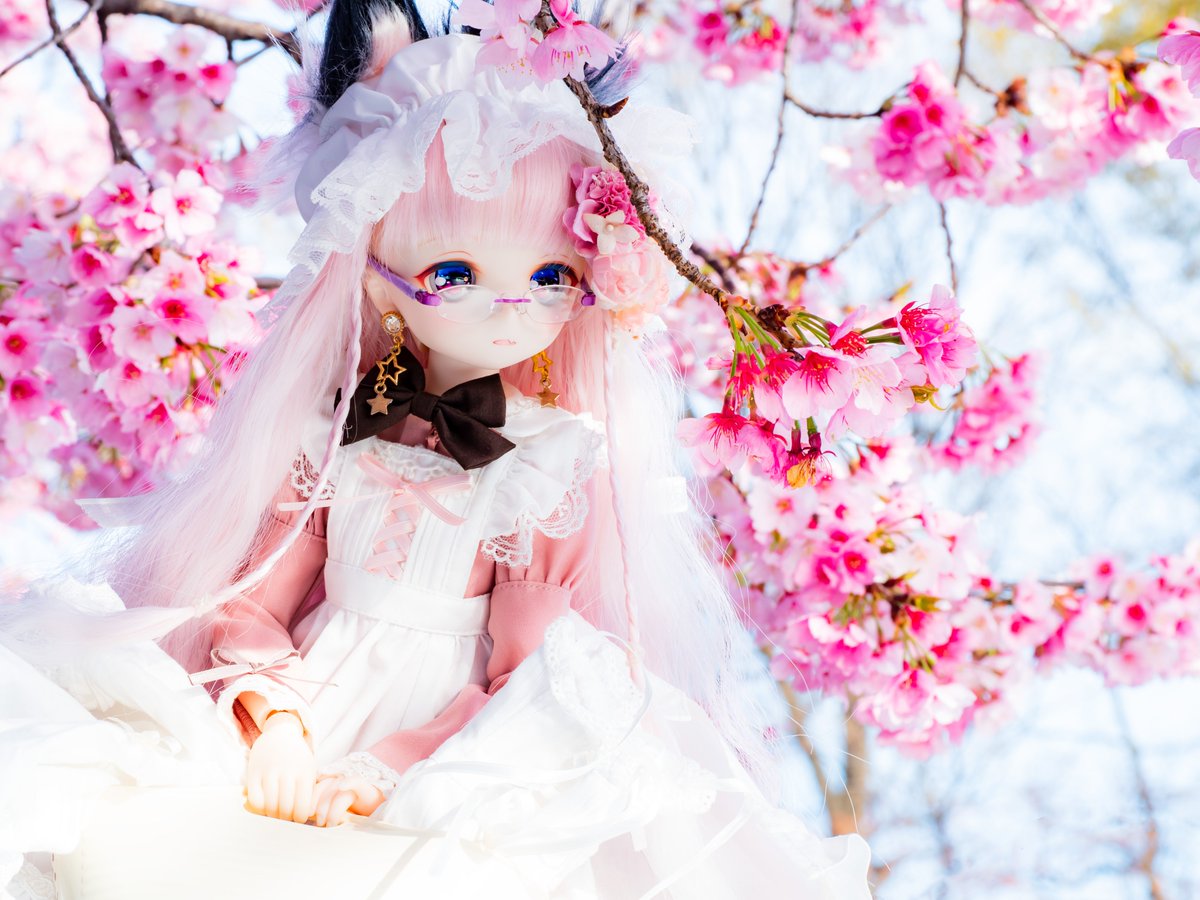 ⁎ .。❀舞い散る木洩れ陽の桜坂゚❀。: ゚ みゆ:あっちも綺麗なのです❣€===⸜( * ॑꒳ ॑*)⸝ ❀シュタタタ らいと:あっ、走ったら…💦 #RonshukaCouture #ドールと桜 #MDDはいいぞ