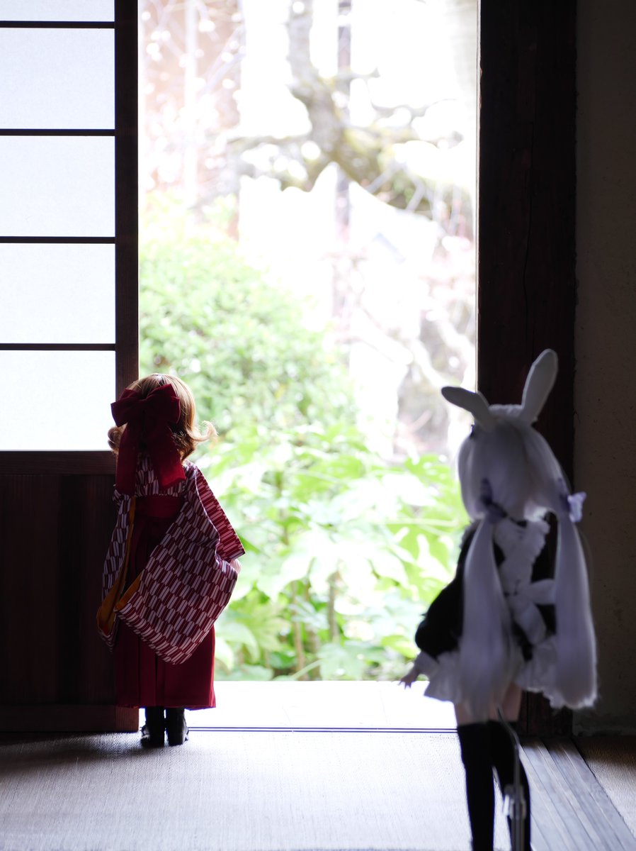 #今夜のドール撮影120分一本勝負 お題【ふじゆう】 雨、降ってるなぁ…… ☂ #リトルワンダーワードローブ #ロンシュカウィッグ #ドールの背中 #ミニ傘 #SaururusChinensisHoliday