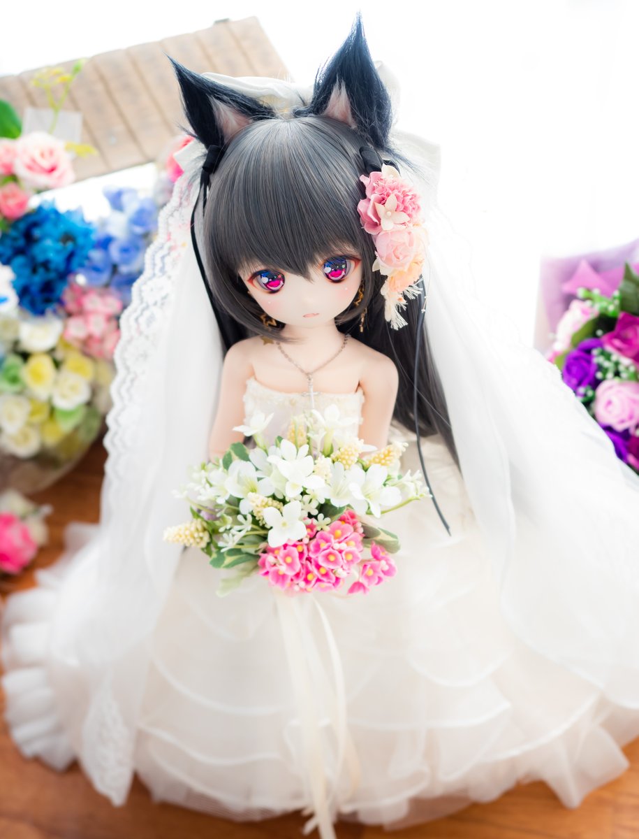 おはよう土曜日~⛅ フォロワー2,000人ありがとう企画に、たくさんのご参加ありがとうございます🥰 星凪「ドルパ会場ではボクがブーケトスして、よそのかわいい子にブーケをプレゼント。。していい?」 欲しい子いるかな😳 #おはドル #ドールウェディングドレス