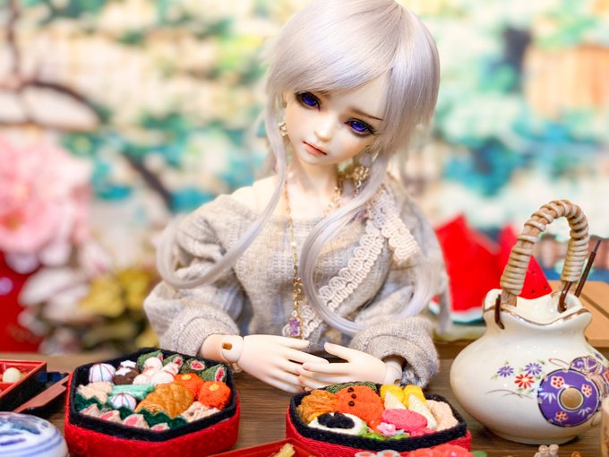 ゚ .(ノ*・ω・)ノ*.おはようございます❁.*・゚ 日曜日、なーんにもない日です。 どうやって過ごそうかしら? 皆さんが有意義に過ごせますように🍀 悠くんは豪華なお料理を前にニヤニヤしておりますw どれから食べましょうね〜? #おはドル #ドールスタジオSEN #うちのこかわいい