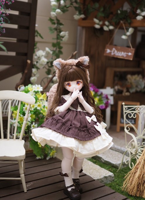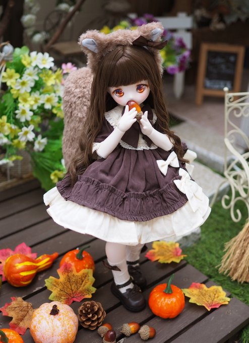 リスぴゃん…🐿️ このツイートも前2つのツイートもドールスタジオSENさんのお庭で撮影させて頂いてます。撮影ブースもそこに置かれてる小物も本当に素敵でちょこんと立たせるだけで絵になってすごい……🥹✨ #Kumakoちゃん #木茶動物園 #ドールスタジオSEN
