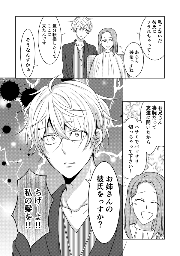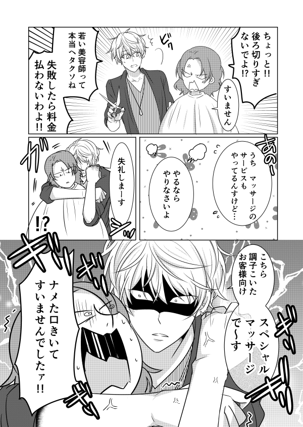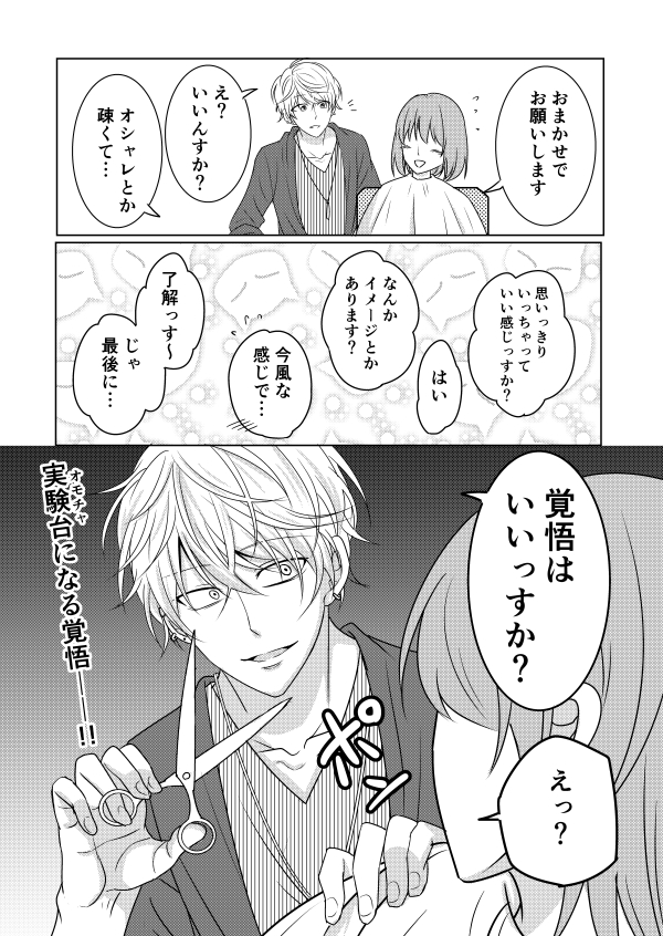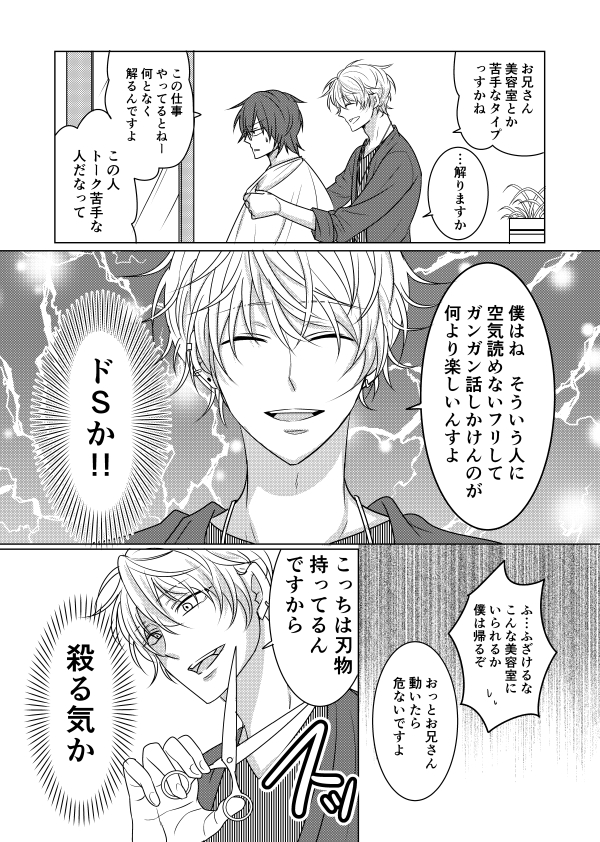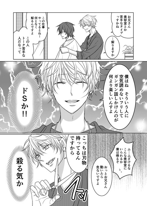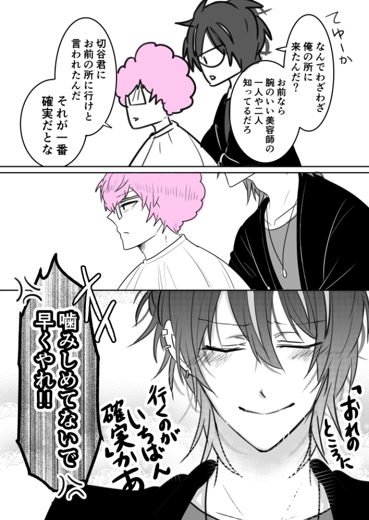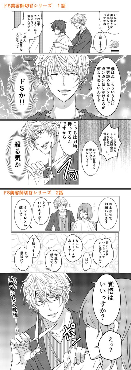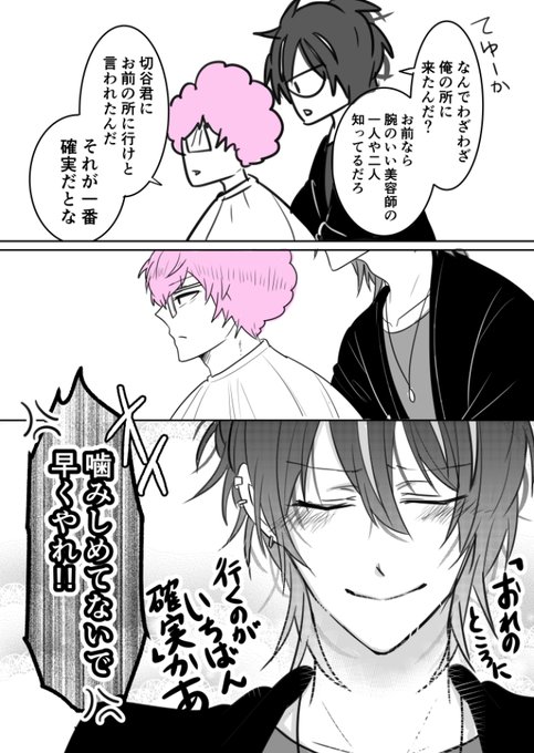 ドS美容師切谷 | 霰屋(あられや) #pixiv pixiv.net/user/16776834/… こういう切谷が見たい方はpixiv・twitterで不定期更新中の「#ドS美容師切谷」シリーズを読むと楽しいかもしれません
