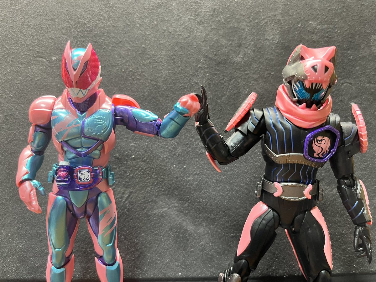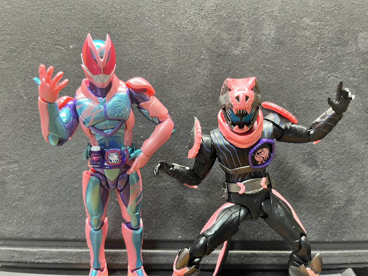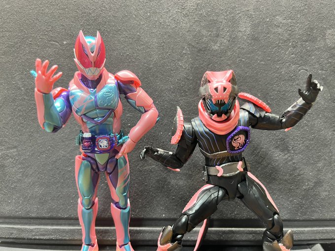 バ『みんな〜みてるぅぅ??? みんなの人気者バイスちゃんでぇす!!! ハッシュタグ #ナイスバイス でよろしくぅぉぉおっととと……』 リ『何やってんだよ。戦いに集中するぞ』 リ・バ 『湧いてきたぜ』 #t_shf #仮面ライダーリバイス