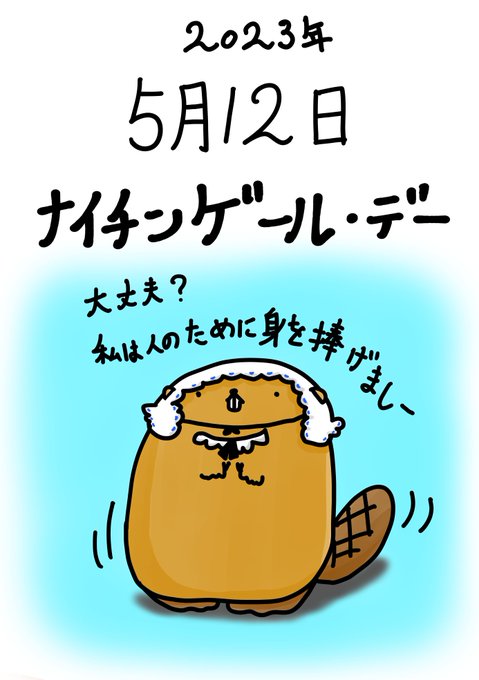 #何の日ビーバー 🦫246日目🦫 5月12日は #ナイチンゲールデー 1920年に赤十字社がイギリスの看護師フローレンス・ナイチンゲールの誕生日にちなんで作られた日⛑️ 近代看護の基礎を築いたナイチンゲールの功績を称えることが目的🚑🦫✨ #イラスト #絵描きさんと繋がりたい
