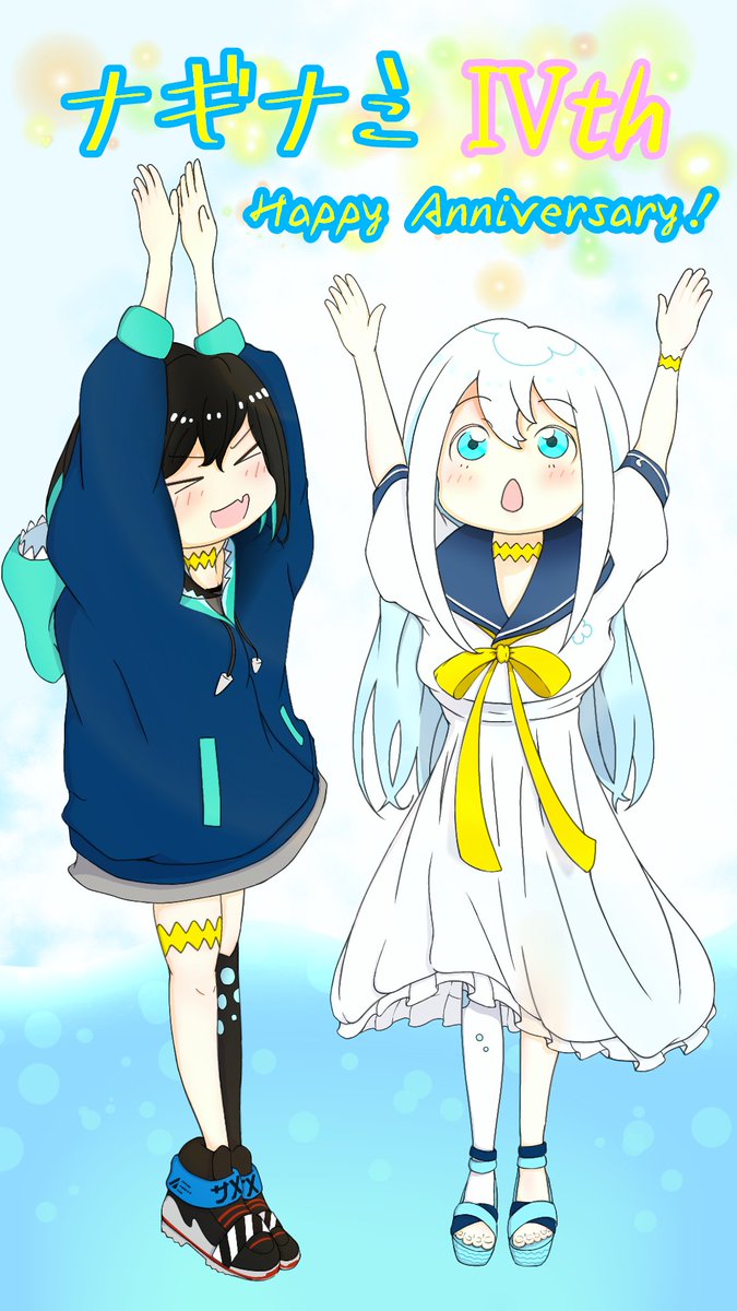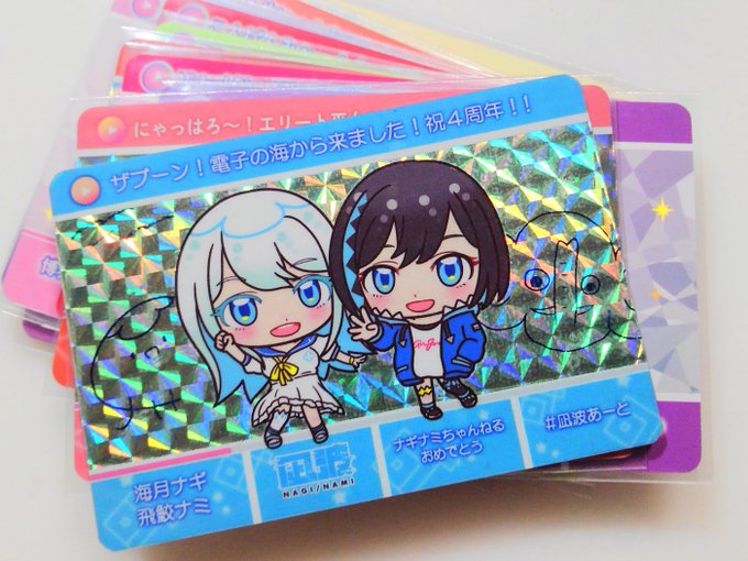 やったーキラカード出た!的な形で #ナギナミ4周年 おめでとうございます!🦈ଳ 昨夜思い付いて半日で何とかしました、ホ○ライブさんやバ○ダイさんとは関係ありませんが俺しかやらないと思うのでw 今夜の配信楽しみです、ナギちゃんナミちゃんおめでとう! #凪波あーと twitter.com/i/web/status/1…
