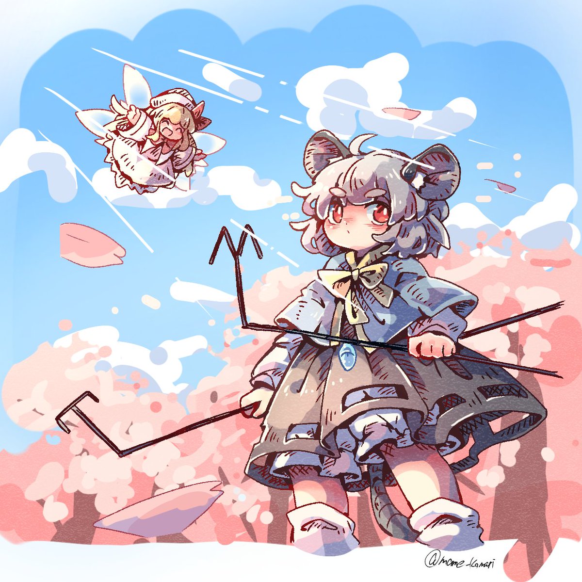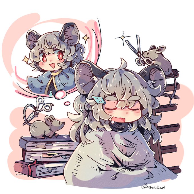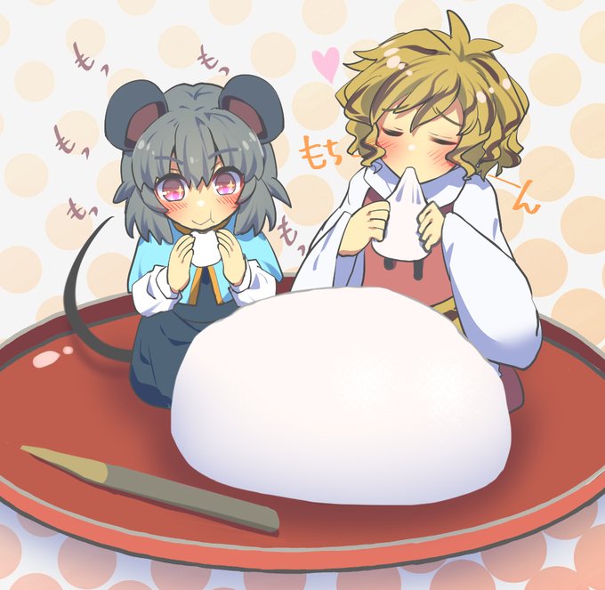 2月9日は『大福の日』! 食品商社が定めた日で由来は語呂合わせ。制定が2017年と、他の日と比べるとそれなりに最近です。 和菓子に添えられるあの楊枝は黒文字というそうです。主従で仲良く美味しい大福をもちもちして欲しいという強い願いから生じた絵です(大袈裟)🐁 #ナズーリンの毎日記念日めくり