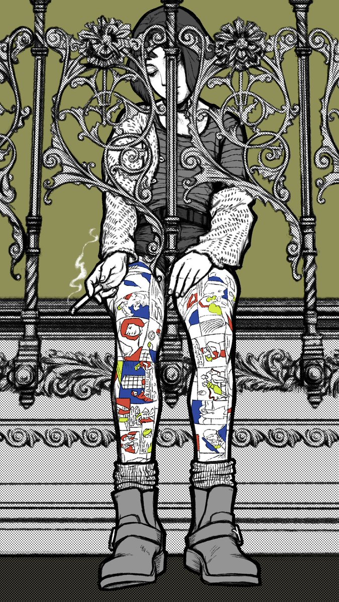 過去絵UP🎬 映画「LEON」(1996) レオンとマチルダが出会う階段のシーン好き。このシーン足元からのスクロールで映画だと全身は写らないの #LEON #マチルダ #午後ロード #らくがき #ナタリー・ポートマン #絵描きさんと繋がりたい