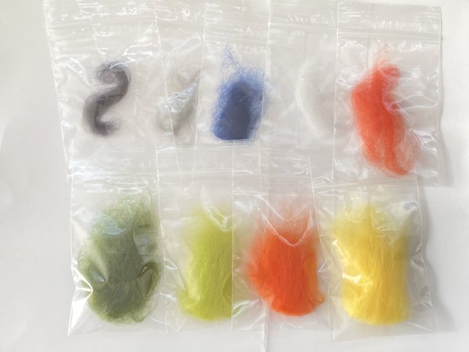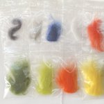 雨覆羽1段目を2羽分だけ搭載 平日は作業時間あまり取れないのでこんなもん コラコラキミたちくん 作業が遅いって詰め寄らない 戦隊じゃないキミたちも参加しない #羊毛フェルト #柑橘戦隊 #コガネメキシコインコ #ナナイロメキシコインコ