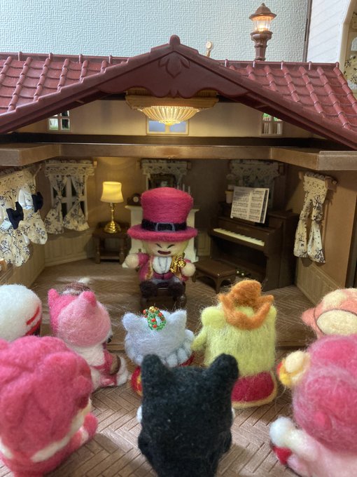 ナブレット団長にごまシンフォニーオーケストラの団長をお願いしたぽ(*´ω`*)💓快諾✨ 団員増やして行くどー❣️ #ドラクエ10 #プクリポ #羊毛フェルト #ナブレット団長 #ごまシンフォニーオーケストラ #シルバニアファミリー