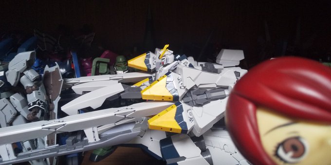 「おはよう。今日は今年初の雨が降ってるな。昨日の夜に完成させた #ナラティブガンダムA装備 が凄く大きいぞ。迫力のサイズとギミックだ。と言うことで今日も宜しく頼む。」 #ガンプラ #ガンプラの画像貼るとRTされると聞いて #ガンプラ好きと繋がりたい #シナンジュ・スタイン