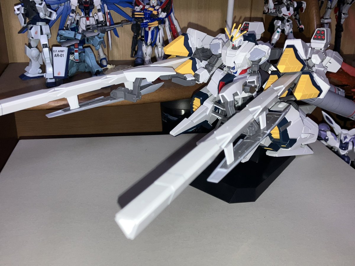 「この #ナラティブガンダムA装備 をなんとか棚に中に入れて、飾れる事に成功した。ブ、ブリリアント。大きすぎる…。😳」 #ガンプラ #ガンプラの画像貼るとRTされると聞いて #ガンプラ好きと繋がりたい
