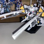 「遂に #ナラティブガンダムA装備 を完成をさせた。かなり大きいぞ!まるで少し小型化にしたミーティアみたいな感じだな。Bソードを付けたら前後が長すぎる…ブリリアント。ん?…私が鹵獲される…やめてくれっ!」 #ガンプラ #ガンプラの画像を貼るとRTされると聞いて #ガンプラ好きと繋がりたい