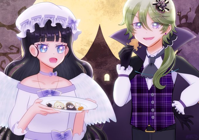 #ナルあまハロウィン企画 びすきさん(@biski_dp )の素敵な企画に参加させて頂きます🎃 ★吸血鬼×ドール(新規絵) ★悪魔×黒猫(既存絵アレンジ) ★シークレット(勘がいい方ならわかるかも) の3枚、L版/ハガキお好きなサイズでネップリお願いします! #ナルあま