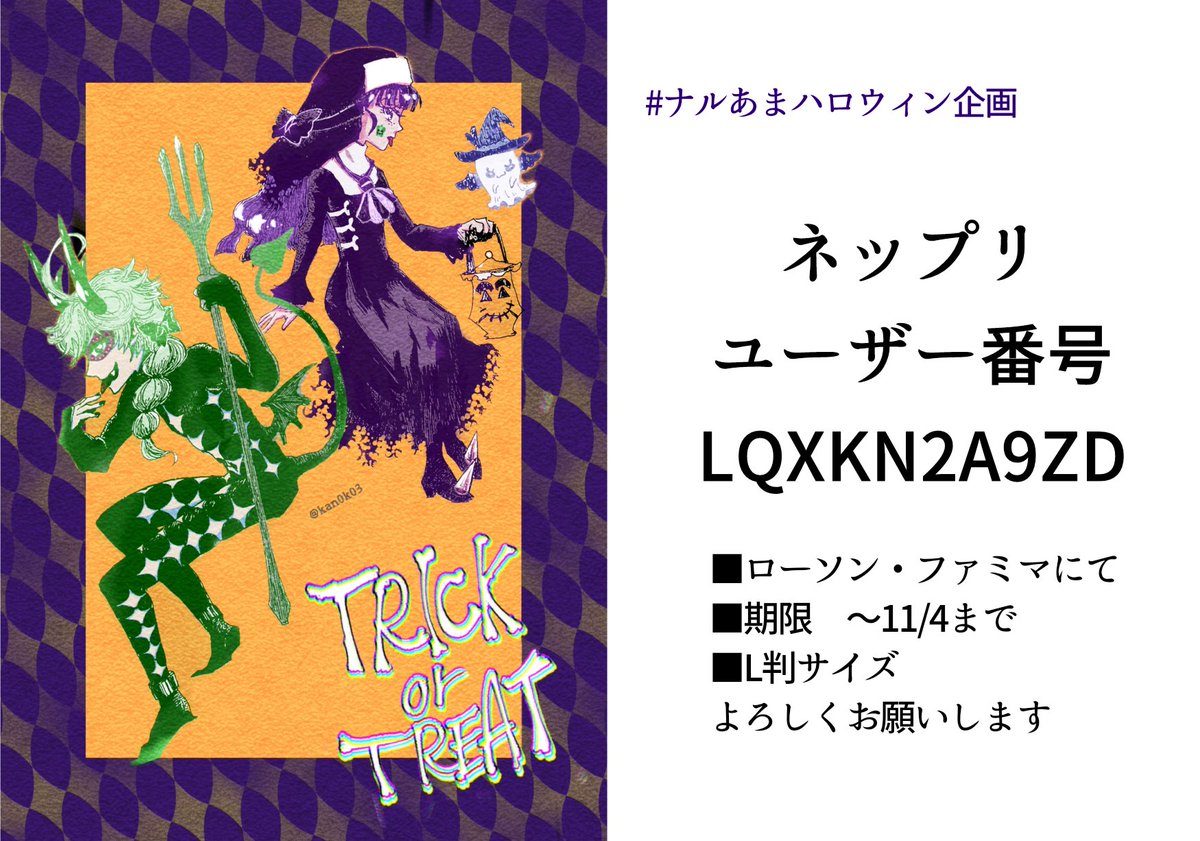 【告知】 🎃ナルあま ハロウィン ネップリ企画👻 🍭2022/10/29(土)~2022/11/4(土)🍬 この2人ハロウィン似合いすぎでは…? という思いつきから始まった私欲にまみれた企画です。 お気軽にご参加頂けます🌟 参加表明は特に必要ありませんがリプ頂けますと嬉しいです✨ #ナルあまハロウィン企画