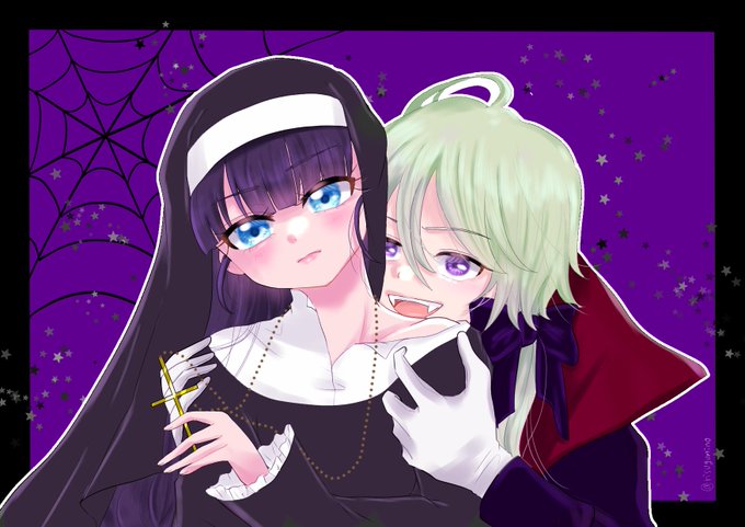 #ナルあまハロウィン企画 素敵な企画ありがとうございます😭 悪いシスターと悪魔を描きました。 ユーザー番号 LQXKN2A9ZD ローソン・ファミマにて印刷出来ます。 L判サイズです。 よろしくお願いします。