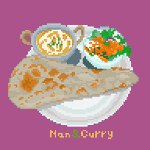食べたナンとカレーが美味しかったので描きました! 初めての料理の絵ですが個人的には好きな感じに描けました! #絵柄が好みって人にフォローされたい #絵描きさんと繋がりたい #ドット絵 #pixelart #カレー #ナン