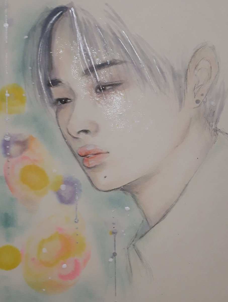 定期的にニキくんを描きたくなります😳 #絵描きさんと繋がりたい #イラスト好きな人と繋がりたい #似顔絵 #人物画 #エンハイフン #ニキ #水彩 #色鉛筆 #ENHYPEN_NI_KI #パステル