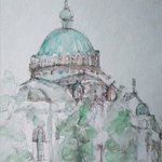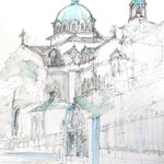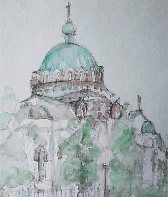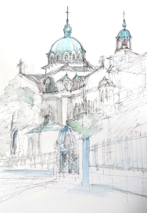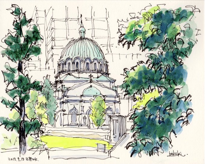 #りえこさん冒険の思い出 その657 東京 。御茶ノ水近くにあるニコライ堂は愛称で、東京復活大聖堂と言うらしい。この辺の散策は神田の古本屋街までなかなか楽しい〜かな? #絵 #旅 #水彩画 #スケッチ #watercolor #ニコライ堂 minne.com/ritakahashi4