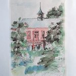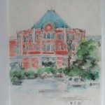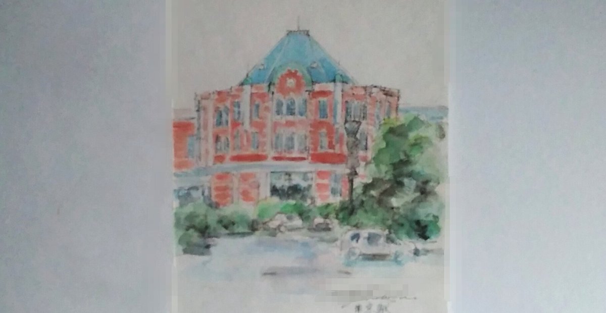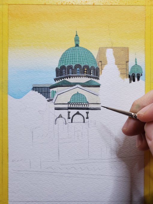 #りえこさん冒険の思い出 その340 東京駅からお茶の水を通り、小石川植物園に行こうとしたら通称ニコライ堂が見えた。正式には東京復活大聖堂というらしい、初めて知った~かな? #人形 #旅 #水彩画 #絵画 #watercolor #ニコライ堂 minne.com/@ritakahashi4