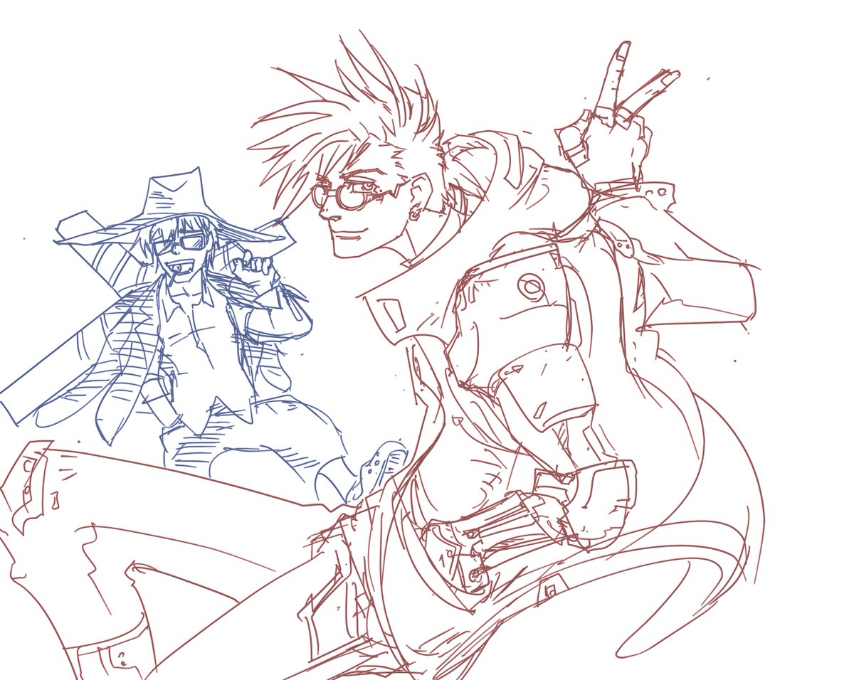 新しい方のふたりを30分でラクガキ #VASHthestampede ✌️ #NicholasDWolfwood #ニコラスDウルフウッド #TRIGUNFANART #TRIGUN #トライガンスタンピード #TRIGUNSTAMPEDE ウルフウッドはコンセプトアートのクソデカツバあり帽子無いんか twitter.com/trigun_anime/s… #絵描きさんと繋がりたい