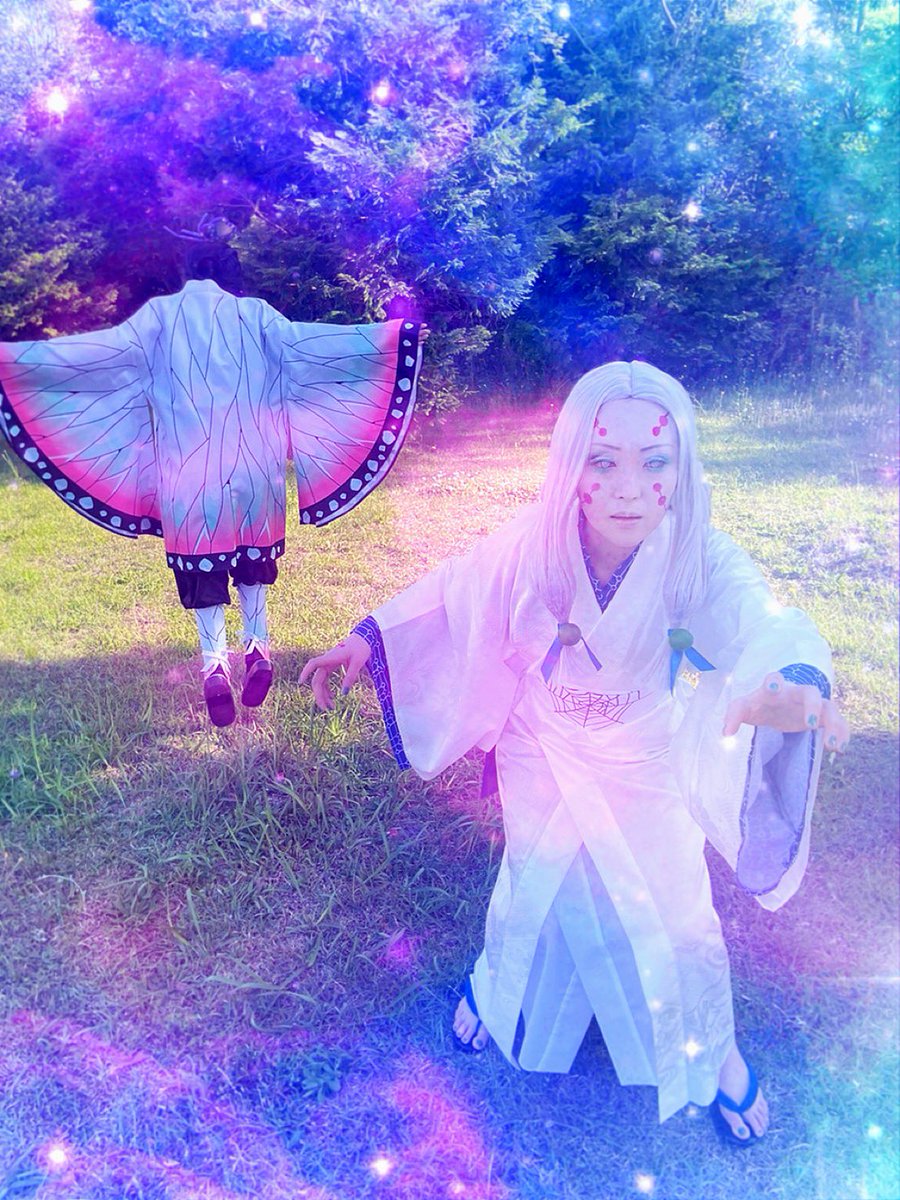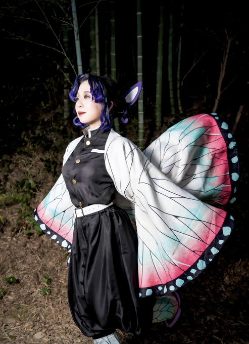 ⚠️cosplay ー凄いですね 手の平から糸を出してるんですか? 蟲の呼吸 蝶の舞 『戯れ』 胡蝶しのぶ 迦南丸 姉蜘蛛鬼 緒条さん@Ojoe0901 撮影📸嵐坊@Kamizosan #ニジゲンノモリ #那田蜘蛛山ナイトウォーク