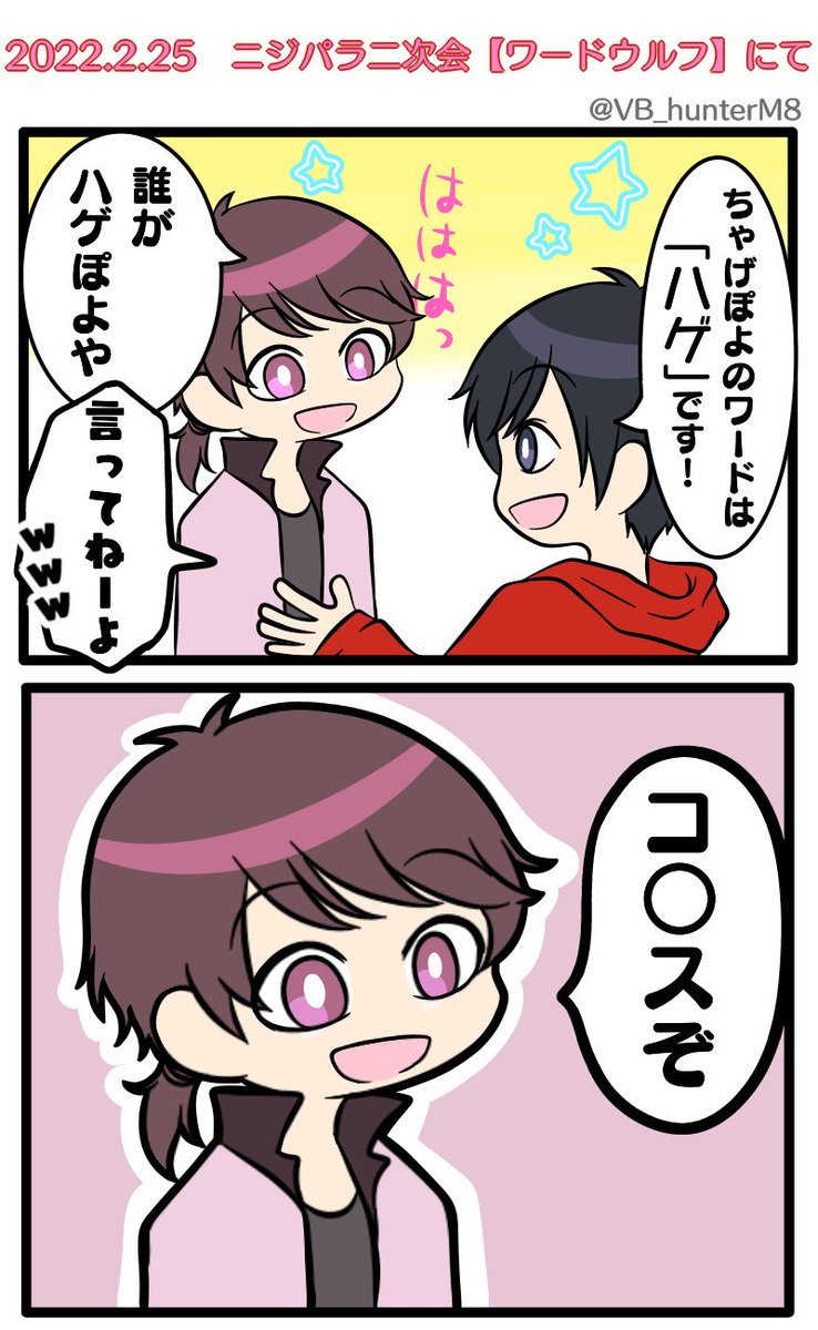 昨日のニジパラ二次会の好きなシーン🤣普段は優しい常識人枠なのにたまにぶっこんでくるちゃげさんおもろくて好き~ww大人ネタにタジタジなピュアかげぴも可愛かったね・・・(σ*´∀`)♥️ #ニジパラ #あーとっち #ちゃげぽよざあーと