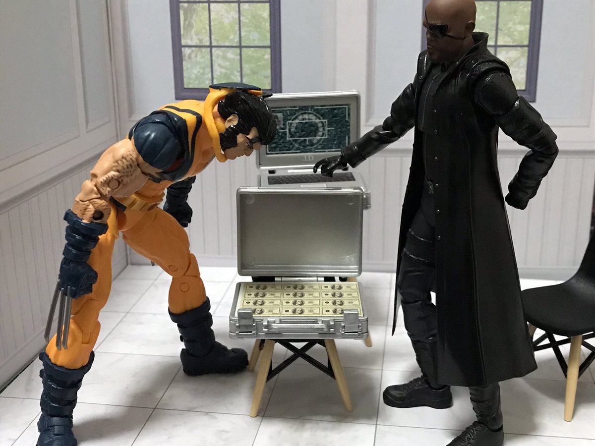 #夜のフィギュア撮影会 5/24 お題『敵対』 過去作 犬派 vs 猫派。 #JohnWick #ジョンウィック #MAFEX #NickFury #ニックフューリー #CaptainMarvel #MarvelLegends