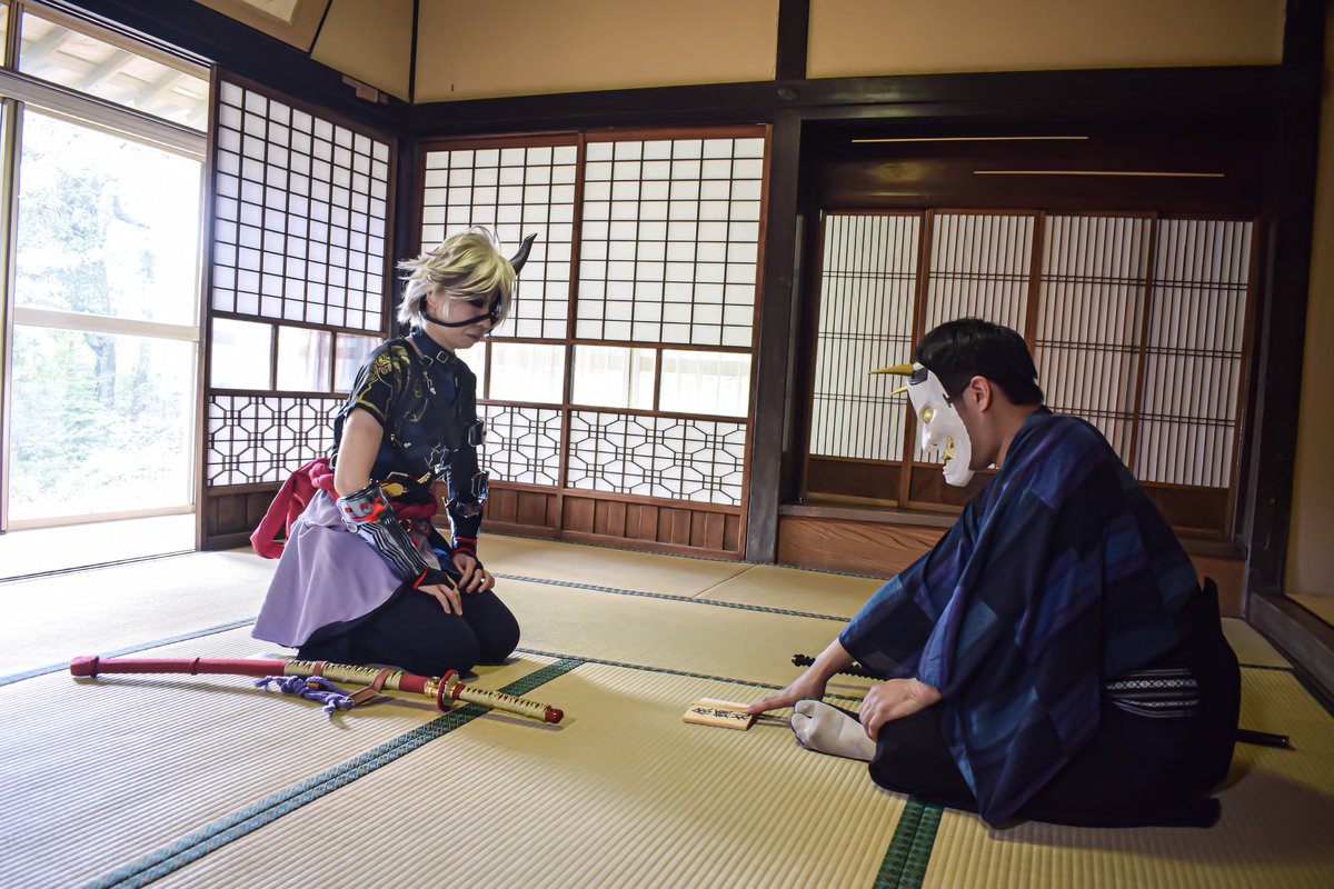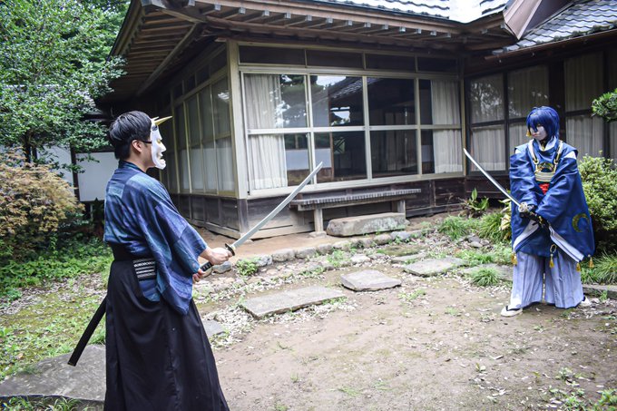 【COSPLAY】 刀剣乱舞/創作審神者 ﹌﹌﹌﹌﹌﹌﹌﹌﹌﹌﹌﹌﹌ 〜審神者稽古〜 ﹌﹌﹌﹌﹌﹌﹌﹌﹌﹌﹌﹌﹌ 刀剣男士の弟子達に刀の稽古をつけてるシーン ・photo→花春香さん(@hanaharka) ・location→名主の古民家 #ニッチCOS #ニッチ本丸0701