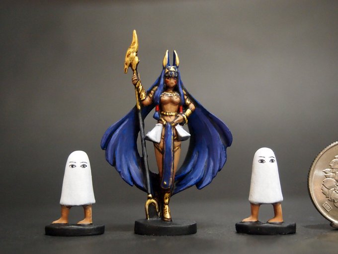 #FGO #ニトクリス 塗装見本できました。髪に金を入れるとこんな感じです🦝 #TFO6 詳細→auroramodel.blog.ss-blog.jp #FateGrandOrder #Fate #ミニチュア #miniatures