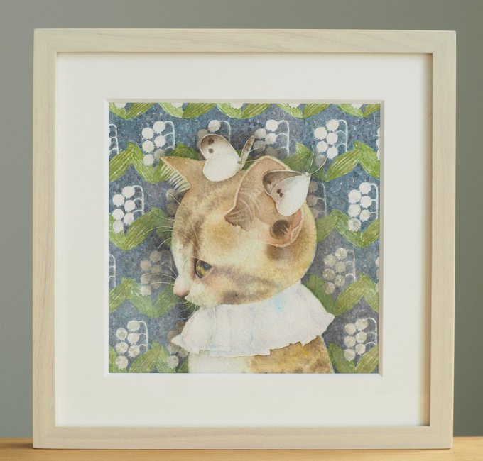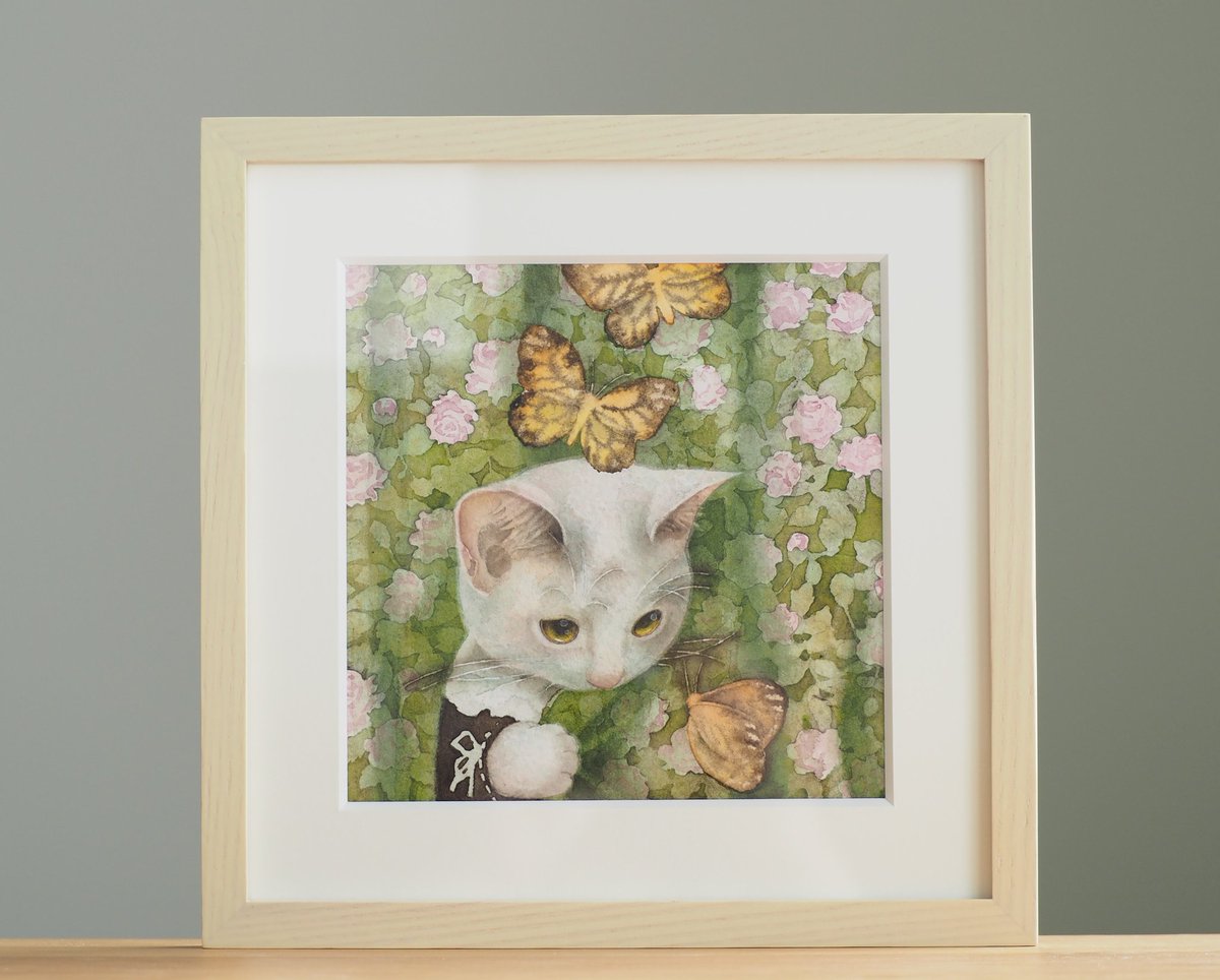 出来た😁今から額装します。 にゃんともニャンズマーケット8 にくきゅうブロックの50にいます。原画販売をします。お支払いは現金のみです。明日遊びに来てね~。 #ニャンズマーケット #水彩画 #白猫