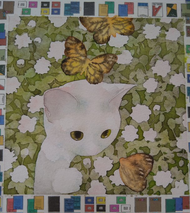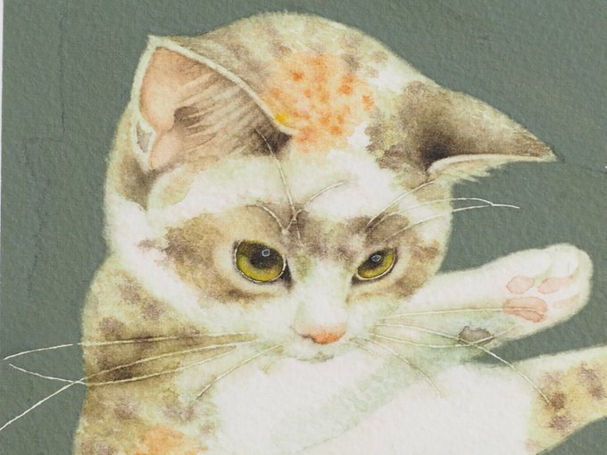 あと一枚…間に合うかしら。白猫ちゃん制作中。 ★7月17日 にゃんともニャンズマーケット8 にくきゅうブロックの50にいます。原画販売をします。お支払いは現金のみです。遊びに来てね~。 #ニャンズマーケット #水彩画 #白猫