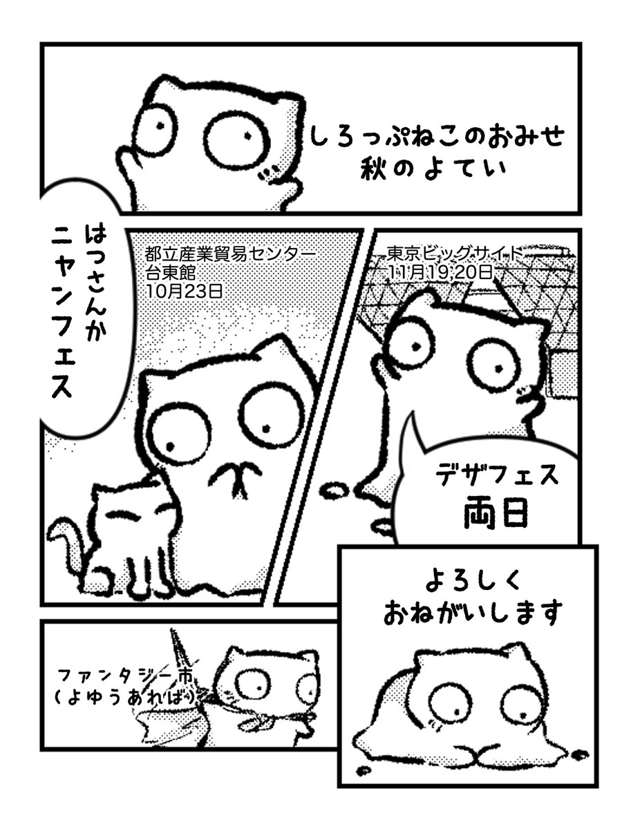 ニャンフェス(⊙ ⊙..^)始まりました よろしくお願いします 『しろっぷねこのおみせ』 B-17 東京都立産業貿易センター台東館 #ニャンフェス #ニャンフェス16 nyanfes.com #siropus_cat #イラスト #drawing #illustraion #猫 #ゆるいイラスト