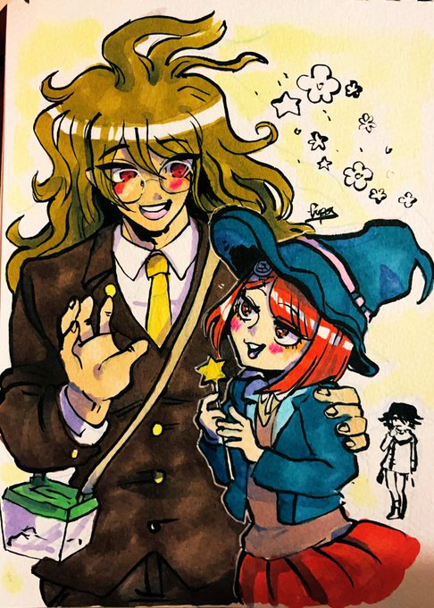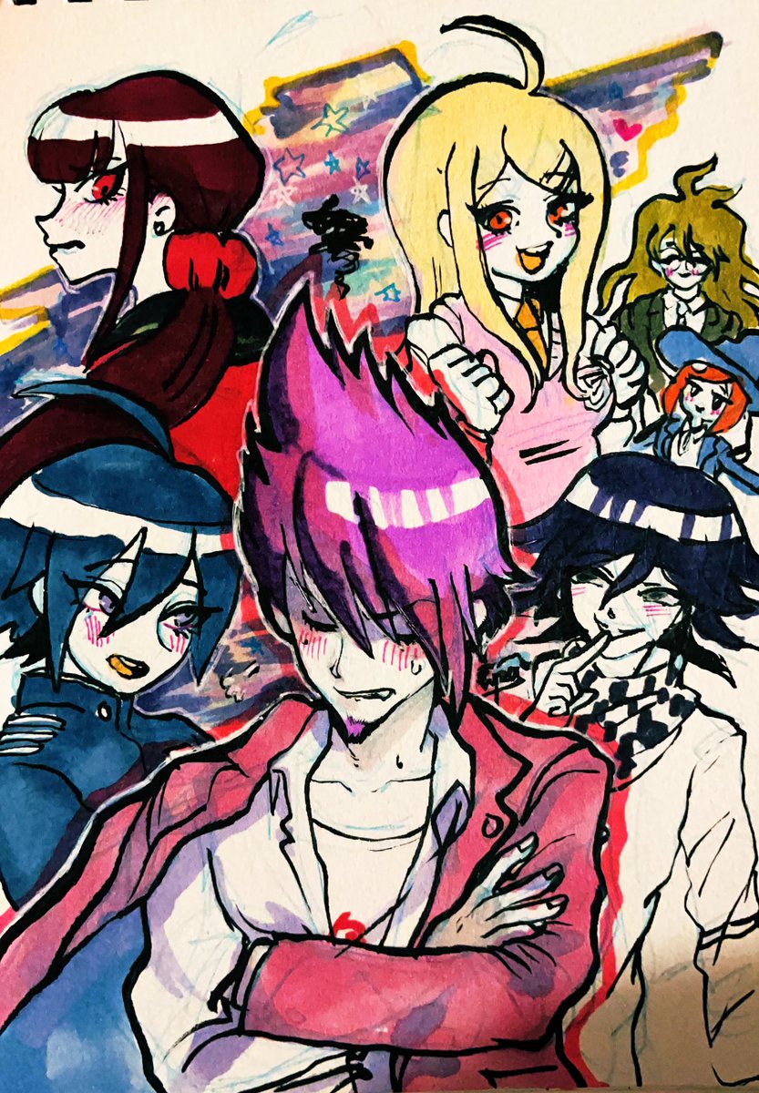 実家なうなんですが、 V3にハマってた頃の絵が出てきました。 百田とゴン太が好きでした。 #ニューダンガンロンパV3 #danganronpa #doodle #draft #scribble #illustration