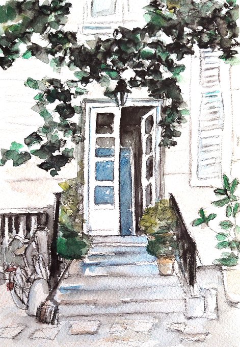 #りえこさん冒険の思い出 その749 ニューヨーク市。友人がブルックリンにいた頃、住んでいたアパートのドアが時々開いたままに。マンハッタンと違って少しのんびり〜かな? #絵 #旅 #水彩画 #スケッチ #watercolor #ニューヨーク minne.com/ritakahashi4 rieko44.base.shop