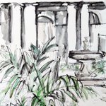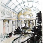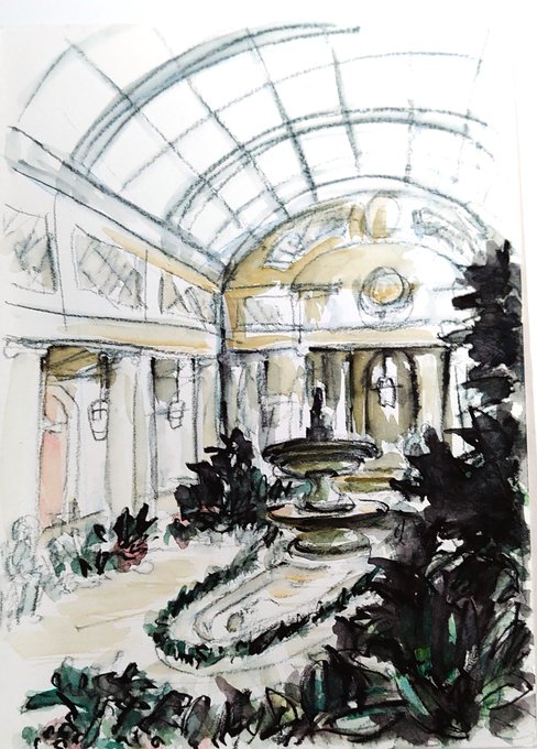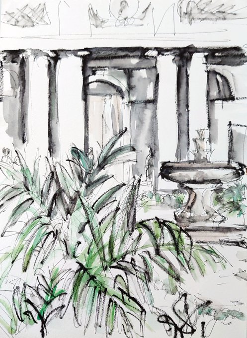 #りえこさん冒険の思い出 その752 ニューヨーク。豪邸をそのまま美術館にしたフリックコレクション。邸の中に噴水のある庭。展示されている絵画も素晴らしいが、この庭も驚く~かな? #絵 #旅 #水彩画 #スケッチ #watercolor #ニューヨーク minne.com/ritakahashi4 rieko44.base.shop