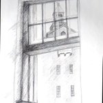 #りえこさん冒険の思い出 その766 ニューヨーク。築百年以上は経っている寮の窓。見える風景も他の宗教の大学。窓はこれほど歪んではいなかったように思うが、こんな感じ〜かな? #絵 #旅 #水彩画 #デッサン #watercolor #ニューヨーク minne.com/ritakahashi4 rieko44.base.shop