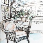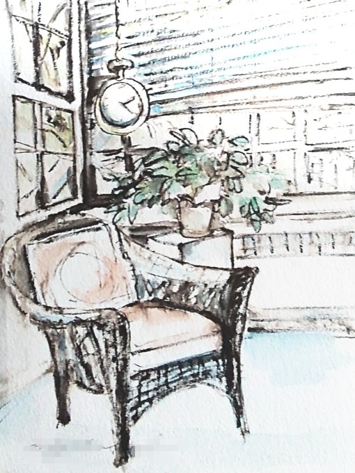 #りえこさん冒険の思い出 その763 ニューヨーク。クイーンズの友人宅 。グリーンを少なくしても光が入り、時計が楽しい素敵な窓辺〜かな? #絵 #旅 #水彩画 #スケッチ #watercolor #油絵 #ニューヨーク minne.com/ritakahashi4 rieko44.base.shop