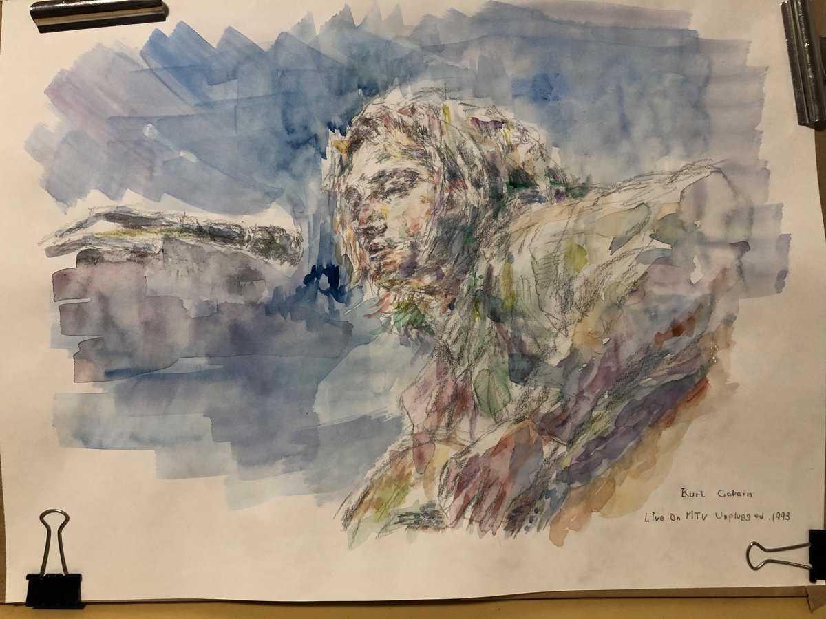 #Nirvana #KurtCobain #illustration #イラスト #みんなで楽しむTwitter展覧会 #透明水彩 #ニルヴァーナ #カートコバーン Live On MTV Unplugged,1993 伝説のライブより。