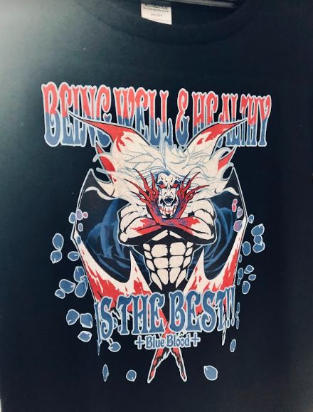 ブルーブラッド=サンの腹筋が魅力的な 当サークルの最初のTシャツ作品。 ジムに着ていけばトレーニングにも実際気合が入ります。 ブルーブラッドモチベーションTシャツ | 閉眼〆幻想 Glow in the dark 4444999999999.booth.pm/items/1601240 #booth_pm #ウキヨエ #ニンジャスレイヤーT #ニンジャスレイヤー