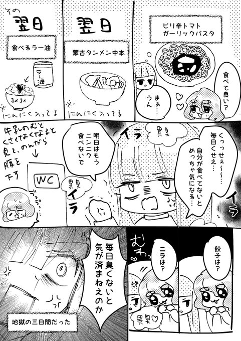 ごはんにかけて食べた肉とタケノコの肉まんの中身みたいなの美味しかった しかしニンニク臭い 「ワンコ」という愛称で呼ばれているアシダケドラゴンです。 #イラスト好きさんと繋がりたい #絵描きさんと繋がりたい #オリキャラ #ドラゴン #ニンニク