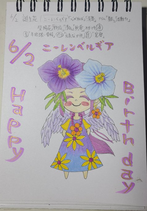 6月2日生まれの皆さん誕生日おめでとうございます😁😁✨ #毎日誰かの誕生日 #花の妖精シリーズ #毎日投稿 #イラスト #誕生日おめでとう #HappyBirthday #ニーレンベルギア #花のある暮らし #花 #illustration #handdrawing