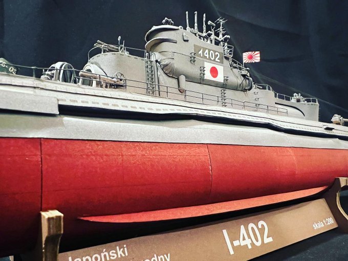 i-402 sen-toku 手摺内側の支柱を追加しました! 情報量が多くなると、船体が大きく見えてくるから不思議です。 youtube.com/@nuida1999 #ペーパークラフト #papercraft #GPM #ヌイダタカシの動画 #papermodel #cardmodel #submarine #潜水艦 #i402 #伊号第四百二潜水艦 #エッチングパーツ #手摺