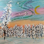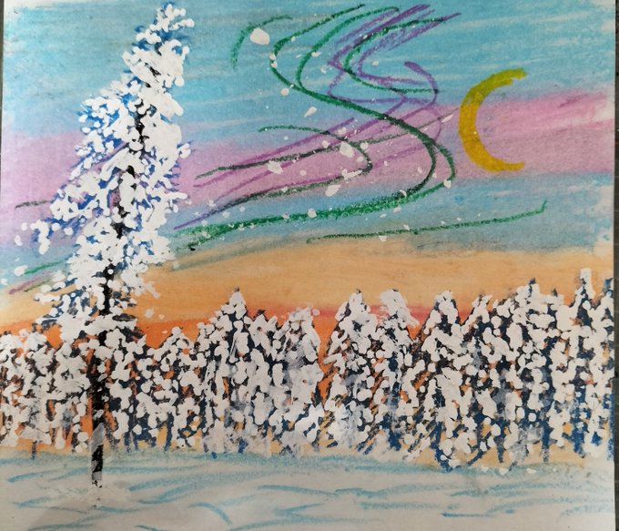 @niigatanohokor2 おはようございます。本日もよく晴れ、出る機会失った 創作パステル画 「ウィンターワールド 夢灯り」 #オイルパステル #ネイチャーヒーリング #絵描きさんと繋がりたい