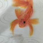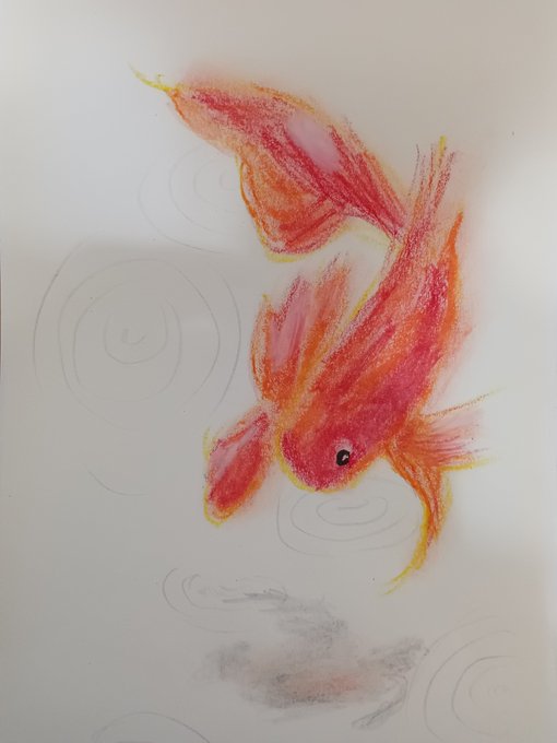 創作パステル画 「焔返り(ホムラガエリ)」 A(←)はスケブに描いたラフ、B(→)はコピー用紙に描いた本番です。 Bは目の位置に失敗し可愛くないです(;・∀・) どちらがお好みでしょうか? #オイルパステル #色鉛筆 #金魚 #絵描きさんと繋がりたい #ネイチャーヒーリング #再投稿