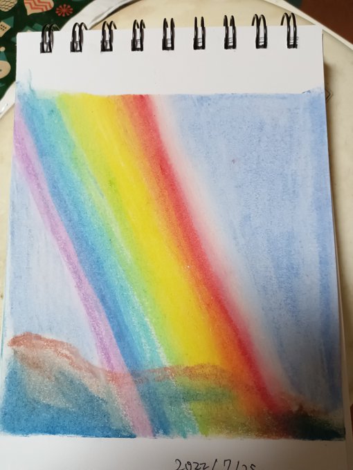 創作パステル画 「カコ」 いつか見た山の夜明け。 遠い日の事か。 偽りの記憶か。 今はもう思い出の欠片。 #オイルパステル #天王区 #雲 #山 #天使の梯子 #ネイチャーヒーリング #絵描きさんと繋がりたい #アナログイラスト #イラスト好きと繋がりたい #みんなで楽しむTwitter展覧会