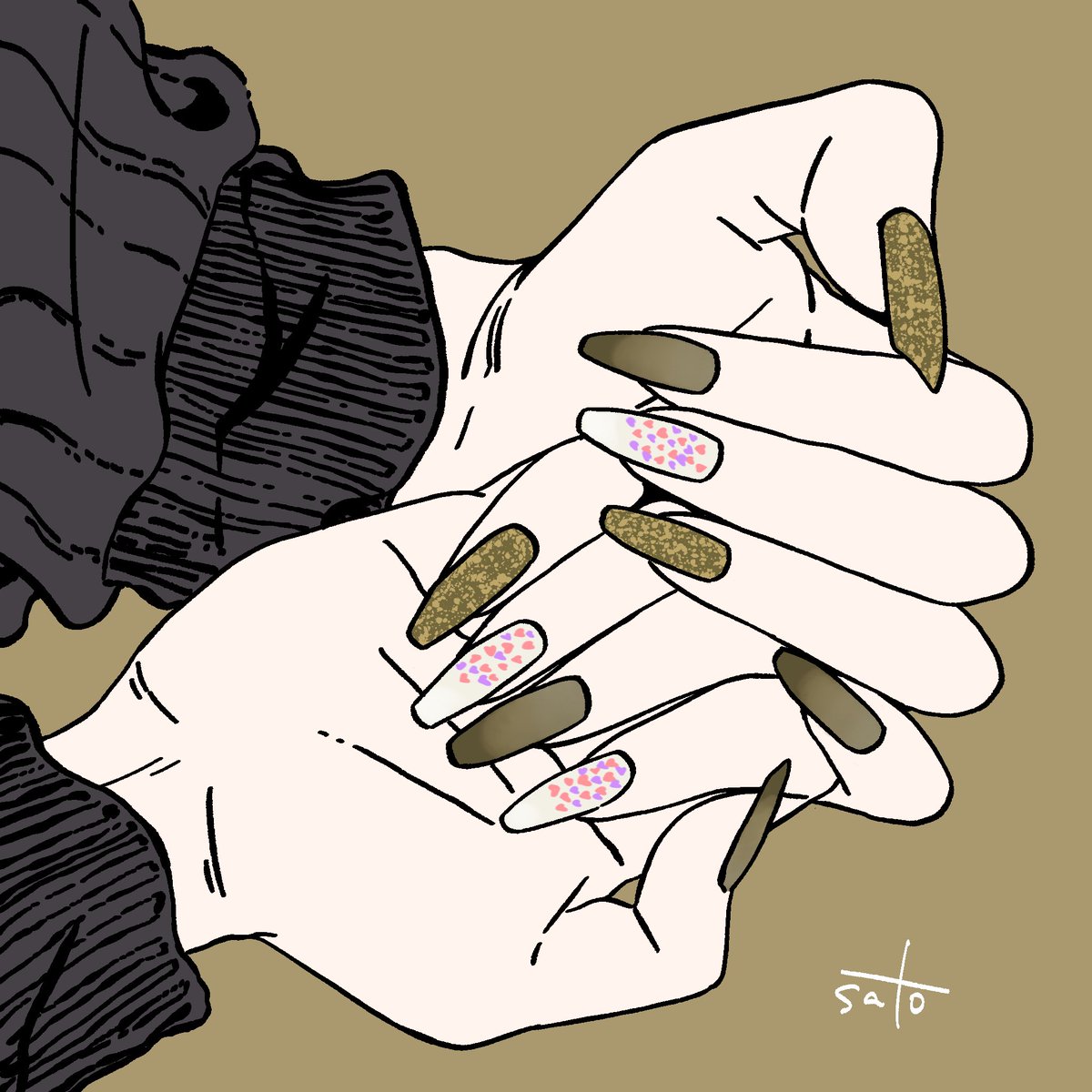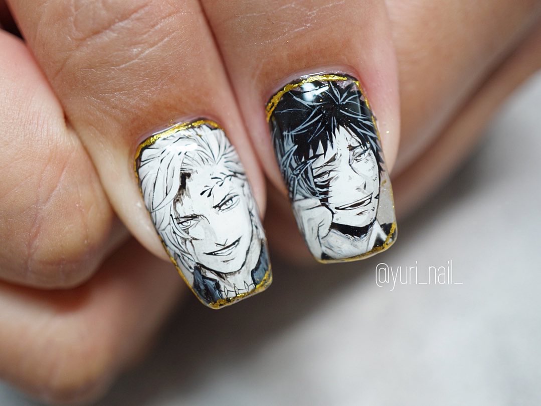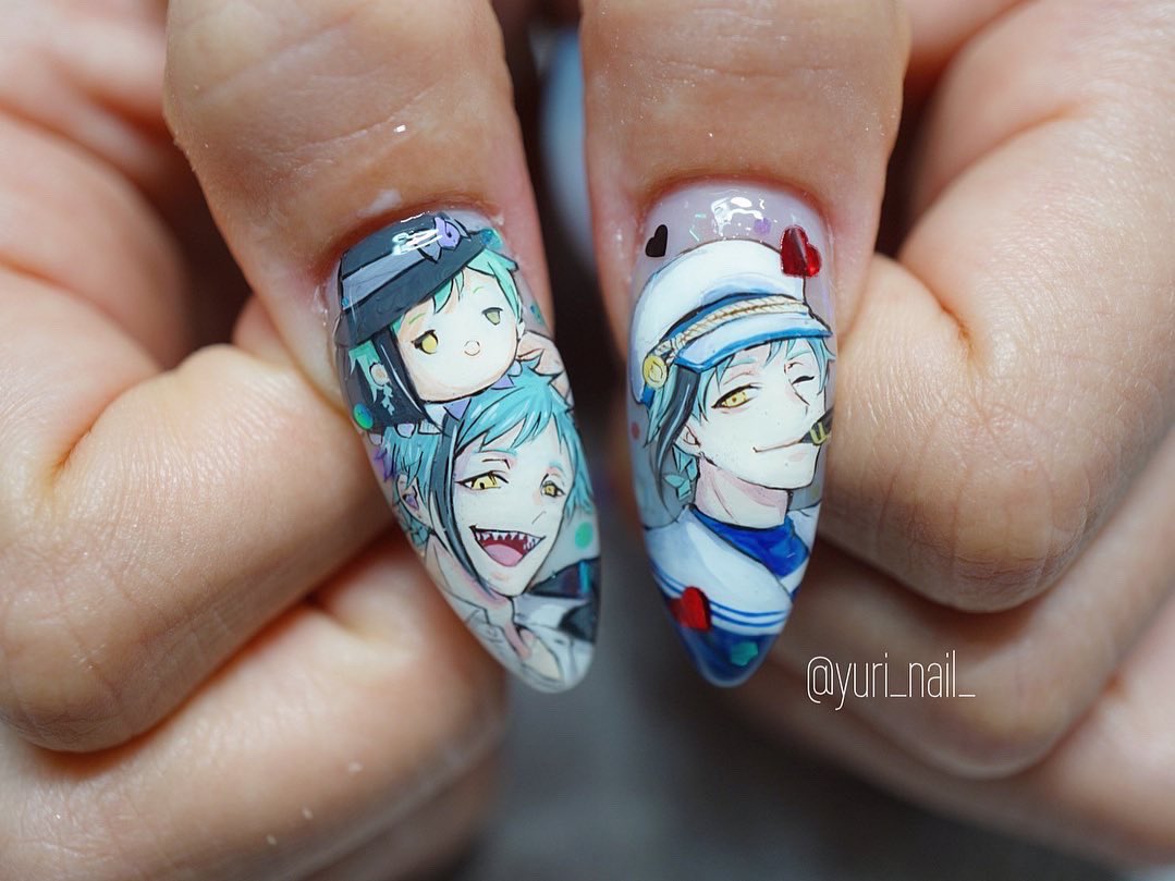 実はセルフネイラーです! 推しカプのネイルやってます💅 いつもインスタに載せてるけど今回頑張ったので見てほしい!!!! 手描きです! #ツイステ #twst #ツイステファンアート #twstファンアート #痛ネイル #セルフネイル #ネイルアート